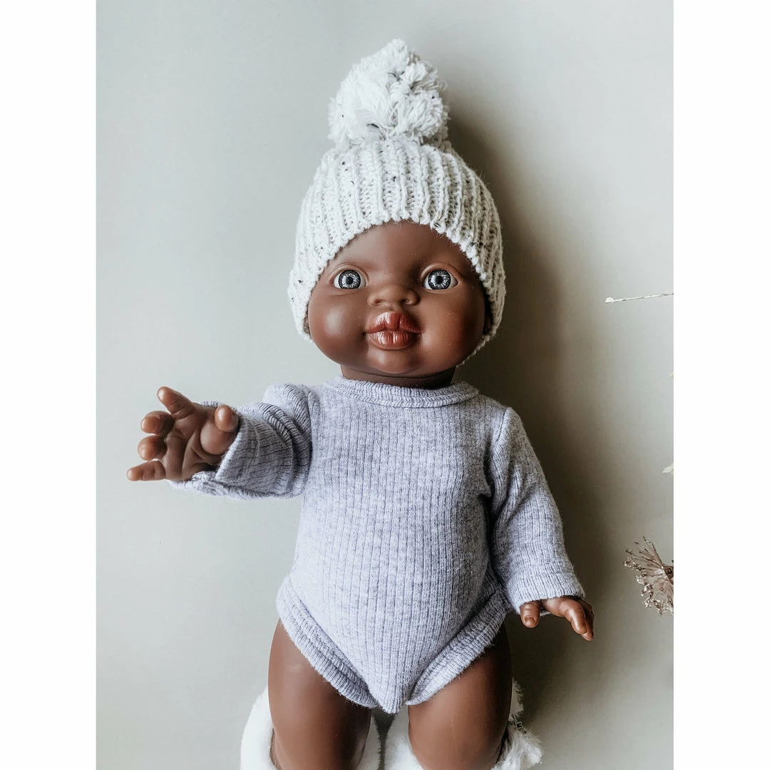 Dolls + Plushies Beige Tank Ribbed + Button Romper Minikane Clothing