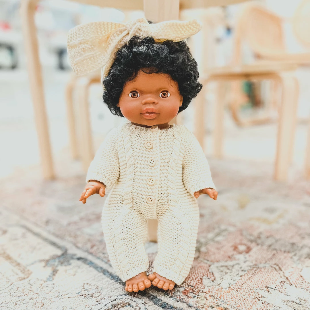 Minikane Dolls are made from eco-friendly and non-toxic vinyl. They are subtly scented with a vanilla scent and are small enough for your little one to hold. Your little one can dress them up with their own baby clothes or choose from the Minikane outfits.
