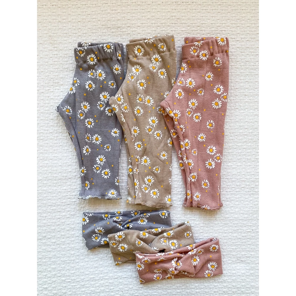 Evelina Apparel Beige Daisy Jersey Leggings Bottoms