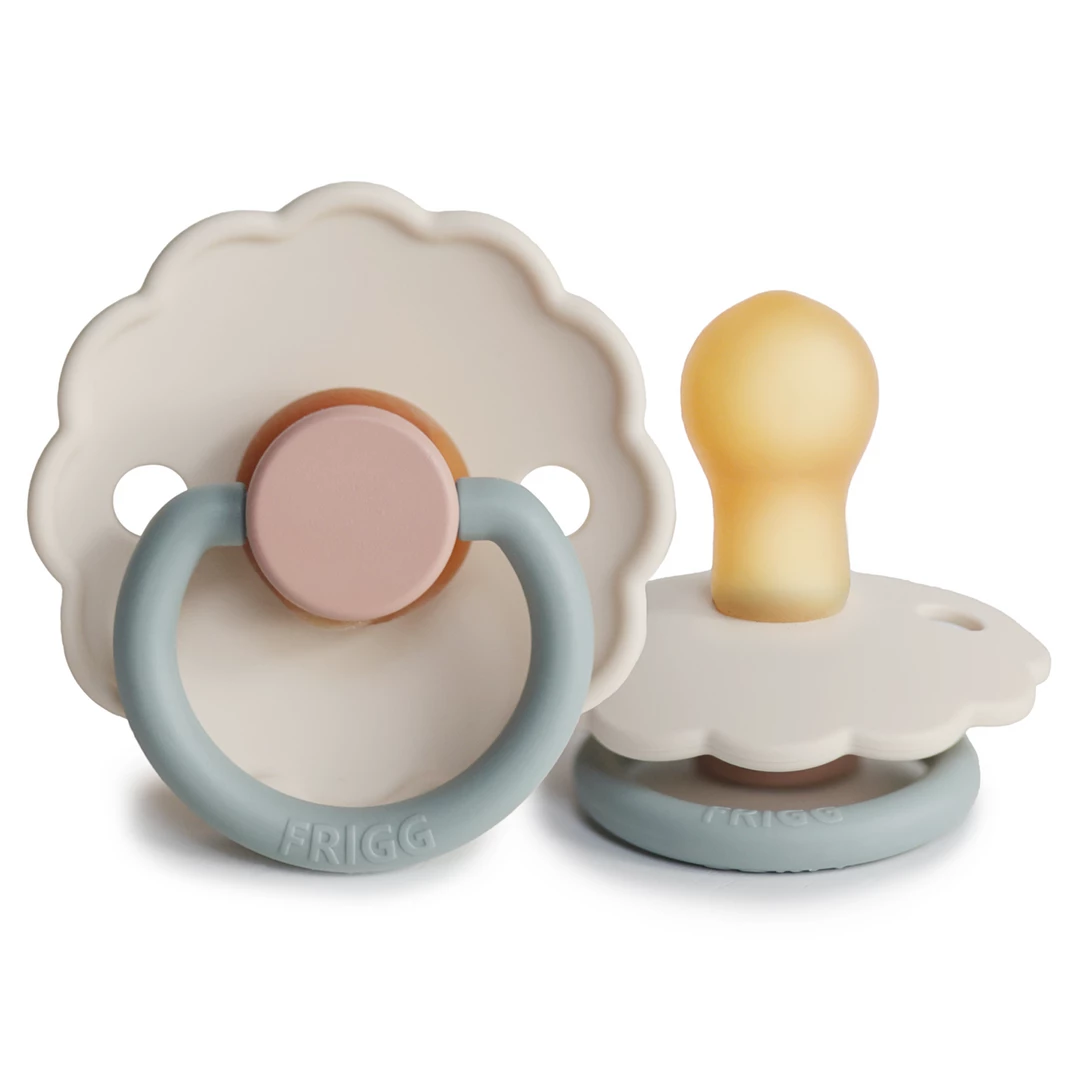 The FRIGG line of moon phase rubber pacifiers is thoughtfully designed for your baby’s comfort and inspired by the moon in motion. The outward curve keeps the pacifier off delicate skin, while air holes and a security handle ensure your baby stays safe. Within the pacifier shield, air holes reveal the eight phases of the moon in subtle detail. Available in a range of soft colors, FRIGG pacifiers make a beautiful addition to your collection of baby essentials.