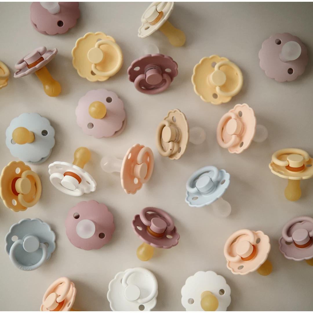 The Frigg Pacifier is absolutely adorable! The bright white daisy design is so charming and perfect for my baby. It’s soft, natural, and my little one loves it.