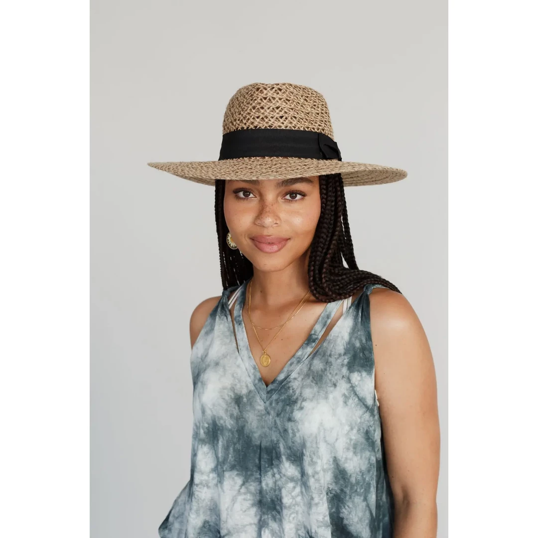 feel the breeze poolside, at the shore, or strolling the farmer’s market in this stylish straw hat