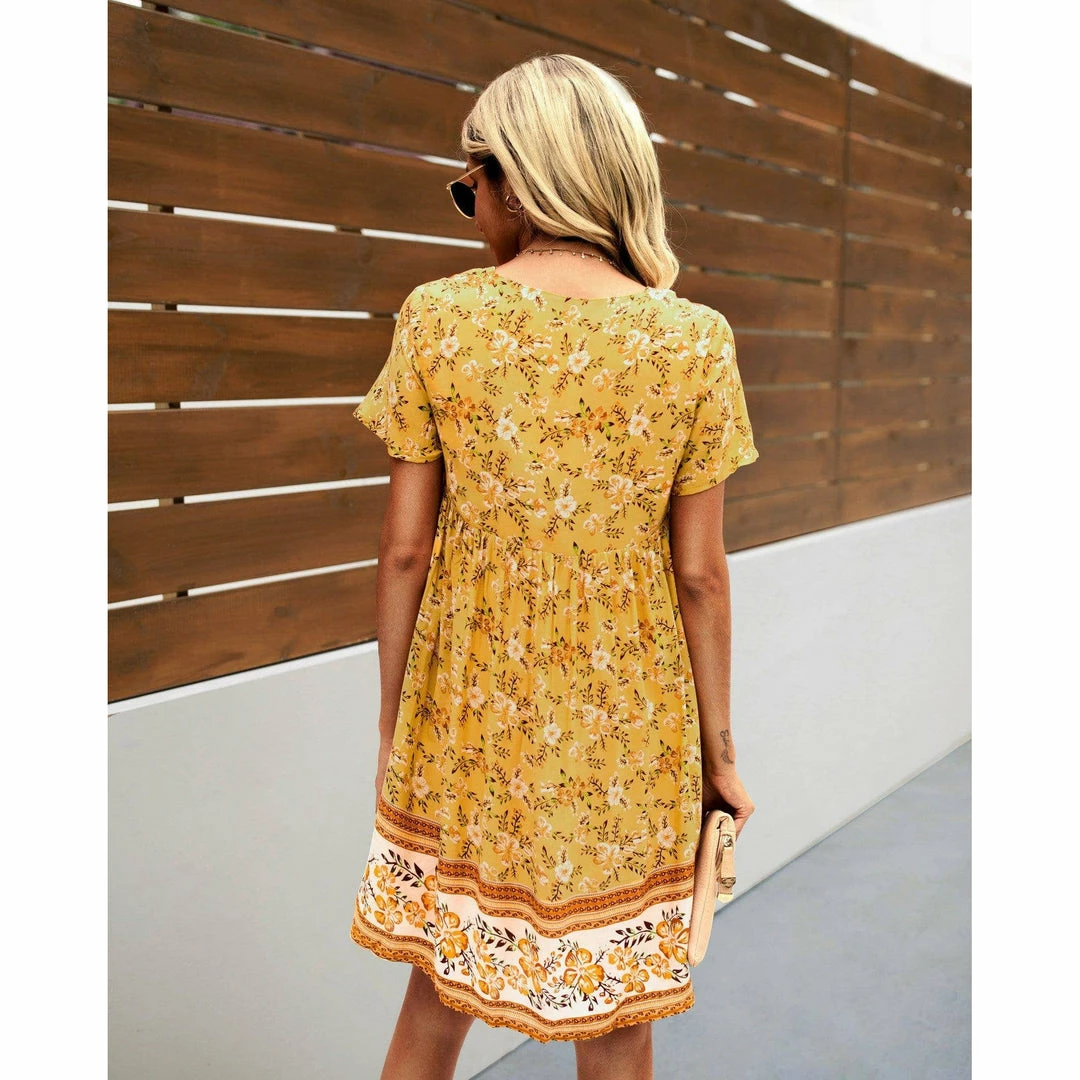 J+j Yellow Floral Boho Dress