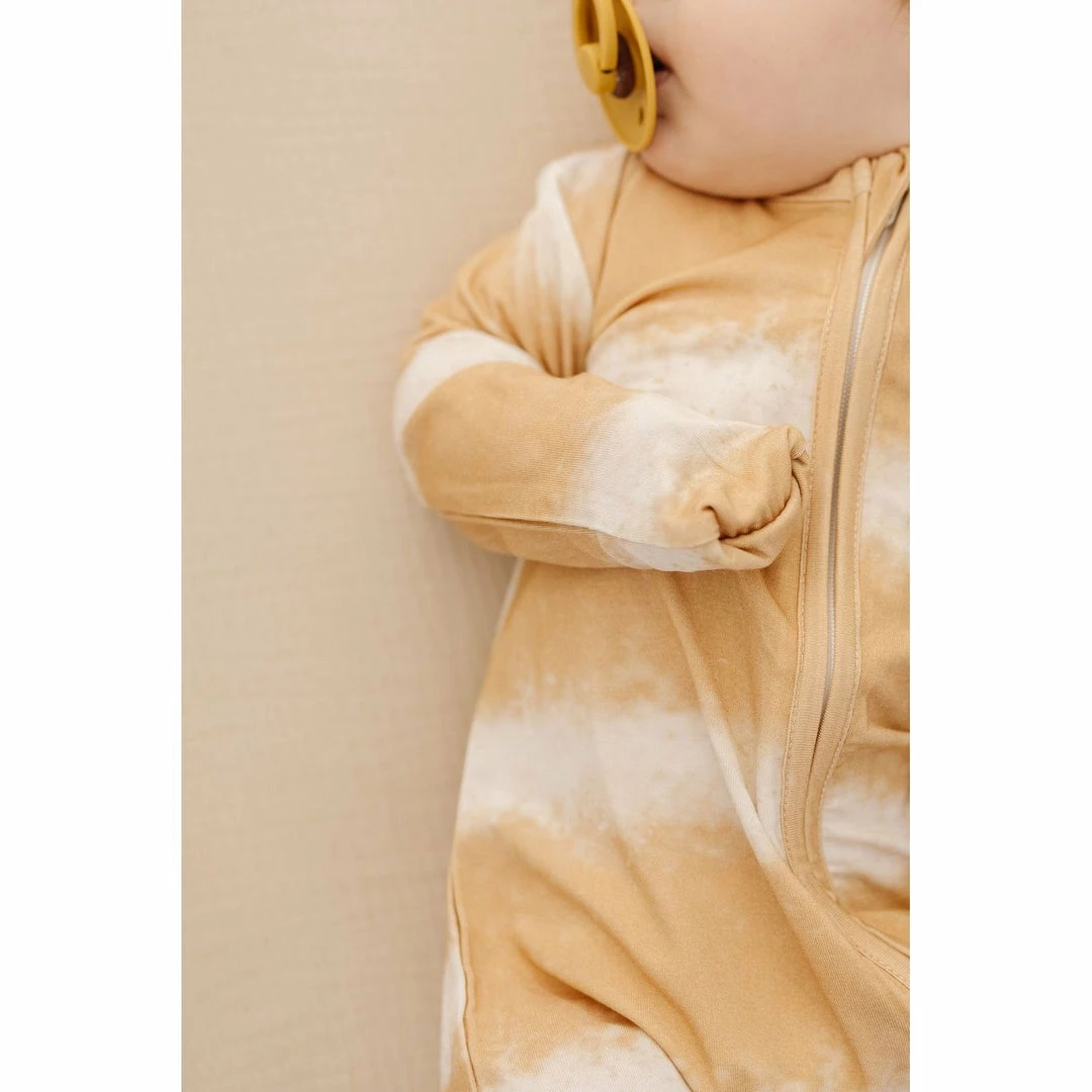 butter soft + stretchy double zipper neutral tie dye sleeper that you will want your baby to wear all day