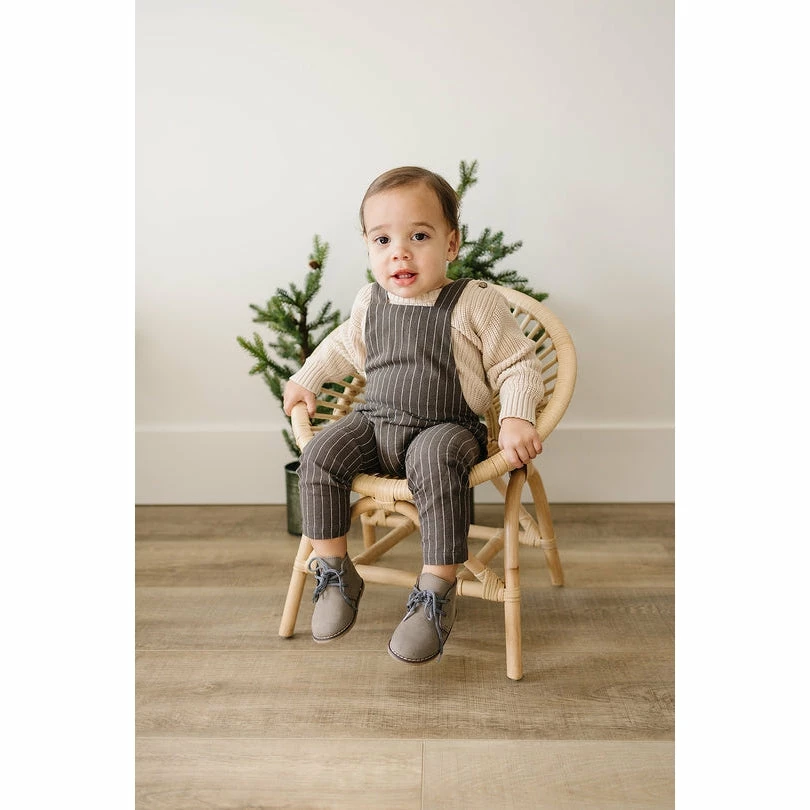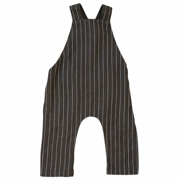 Cute and comfortable linen cotton overalls done up with wood buttons in the back. They have an extra button hole for longer wear!