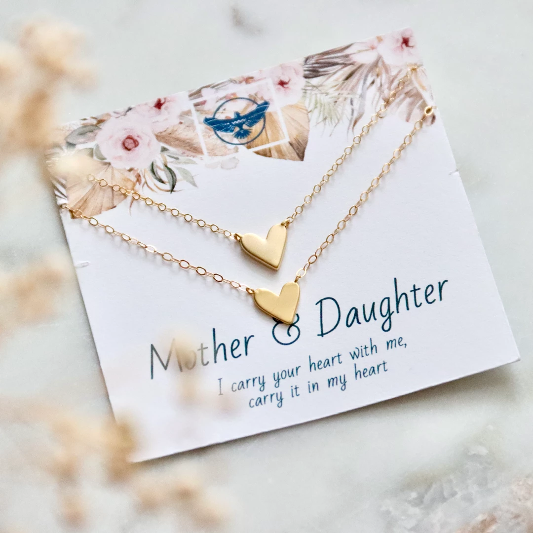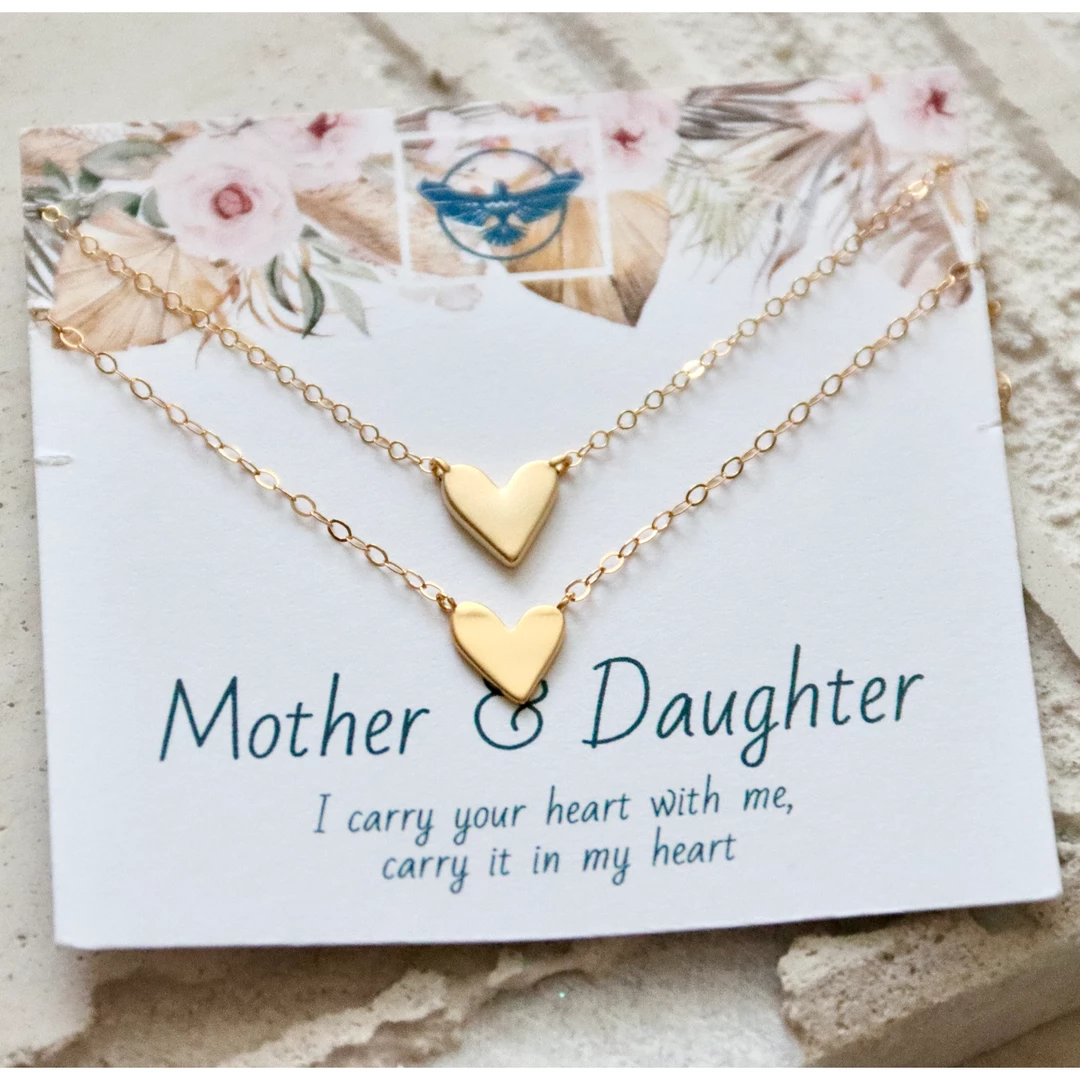 beautiful set of two heart necklaces for mother + daughter