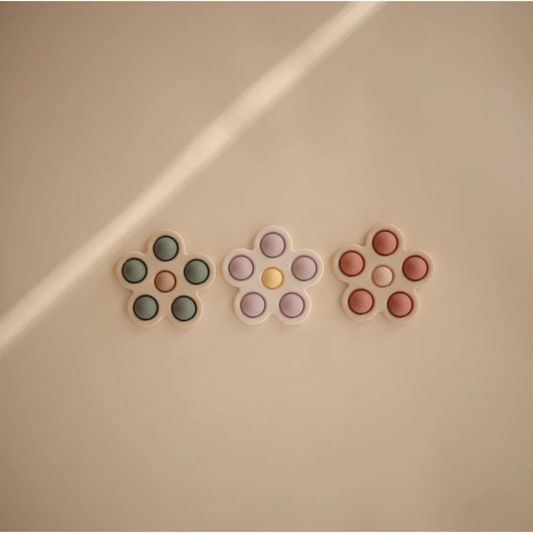 Made with little hands in mind, our flower press toy encourages sensory exploration and the development of fine motor skills with its simple design and soft colors. Featuring food grade silicone and a BPA-free plastic frame, children will tap into learning as they press the bubbles and hear a gentle pop. This toy is inspired by nature and holds the attention of babies and older kids with endless opportunities for play.