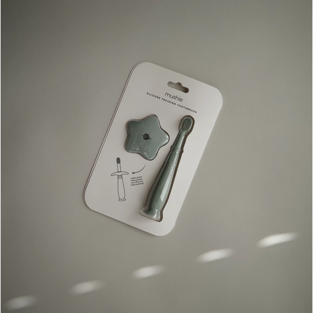 - Training toothbrush features removable safety guard to prevent choking and stay-put suction