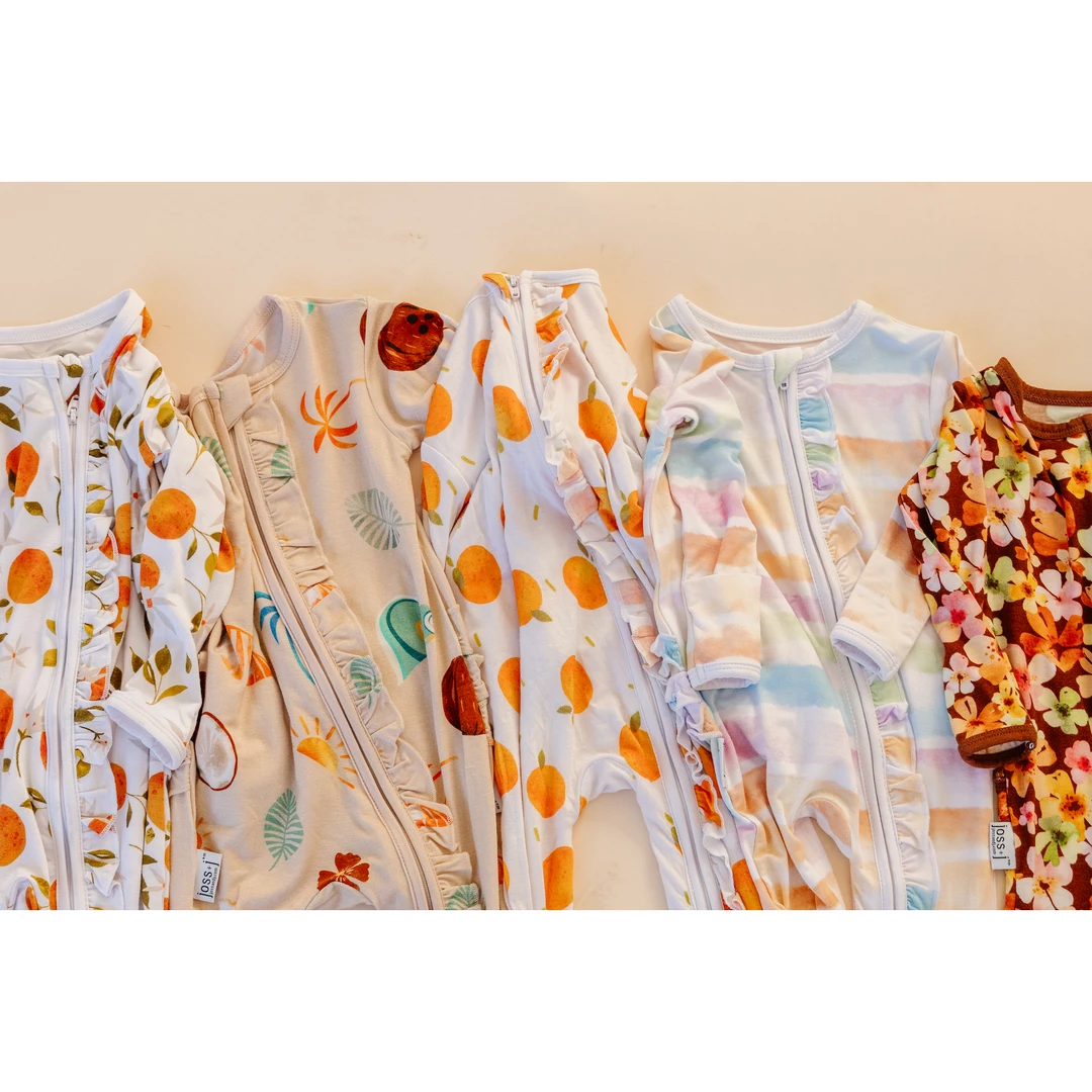 Sleepers Oranges Bamboo Zip Sleeper + Ruffles – Arrows & Bow X Joss + J