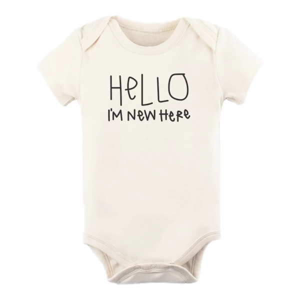 Tenth + Pine Bodysuits Hello I’m New Here Black + Natural Organic Onesie
